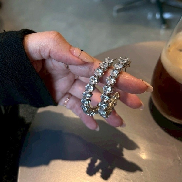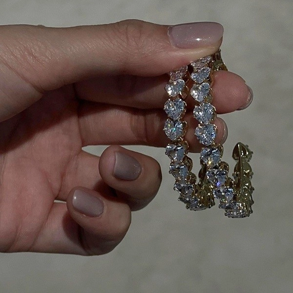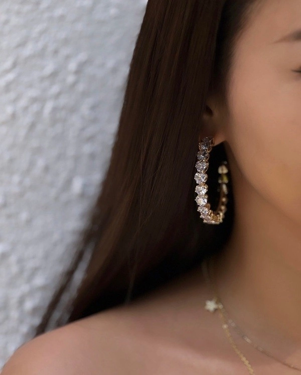 韓製_愛心鑽大圈圈耳環
