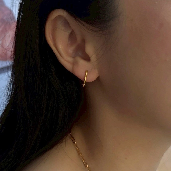 材質: S925銀針 + 鈦鋼電鍍K金 全長: 耳針款 約 1.4 x 0.9 cm 小提醒:因台灣氣候潮濕 或因個人使用習慣 造成 表層金色銀色 有可能會隨著時間褪色,屬於正常現象 保存方式:請保持乾燥,建議不戴時 放置密封袋,可延緩氧化、褪色等情況