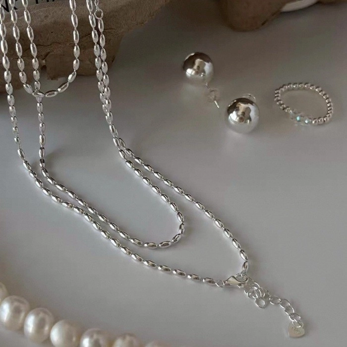 全長: 全長約 49 + 5 cm 延長鍊 (小銀珠抽拉扣環 可自行調節長短)